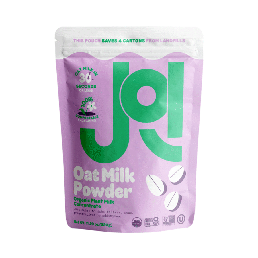 Joi is a sustainable plant milk company designed to reduce food and packaging waste and their oat milk concentrate is amazing. You receive their oat milk concentrate in a compostable pouch, and then you add the water to make your own oat milk! I think this is such a cool idea and a creative way to reduce waste.